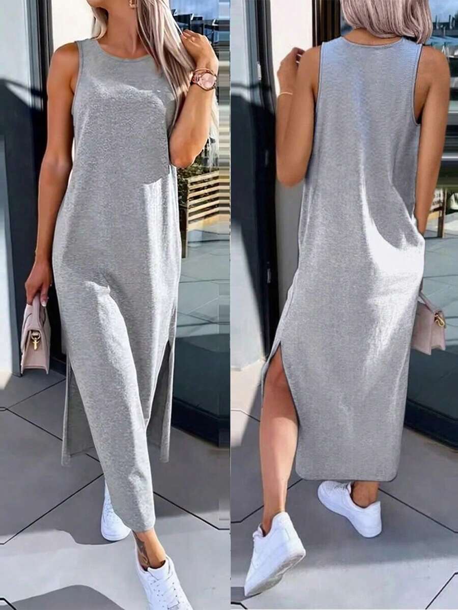Women’s Light Gray Round Neck Side-Split Vest Dress