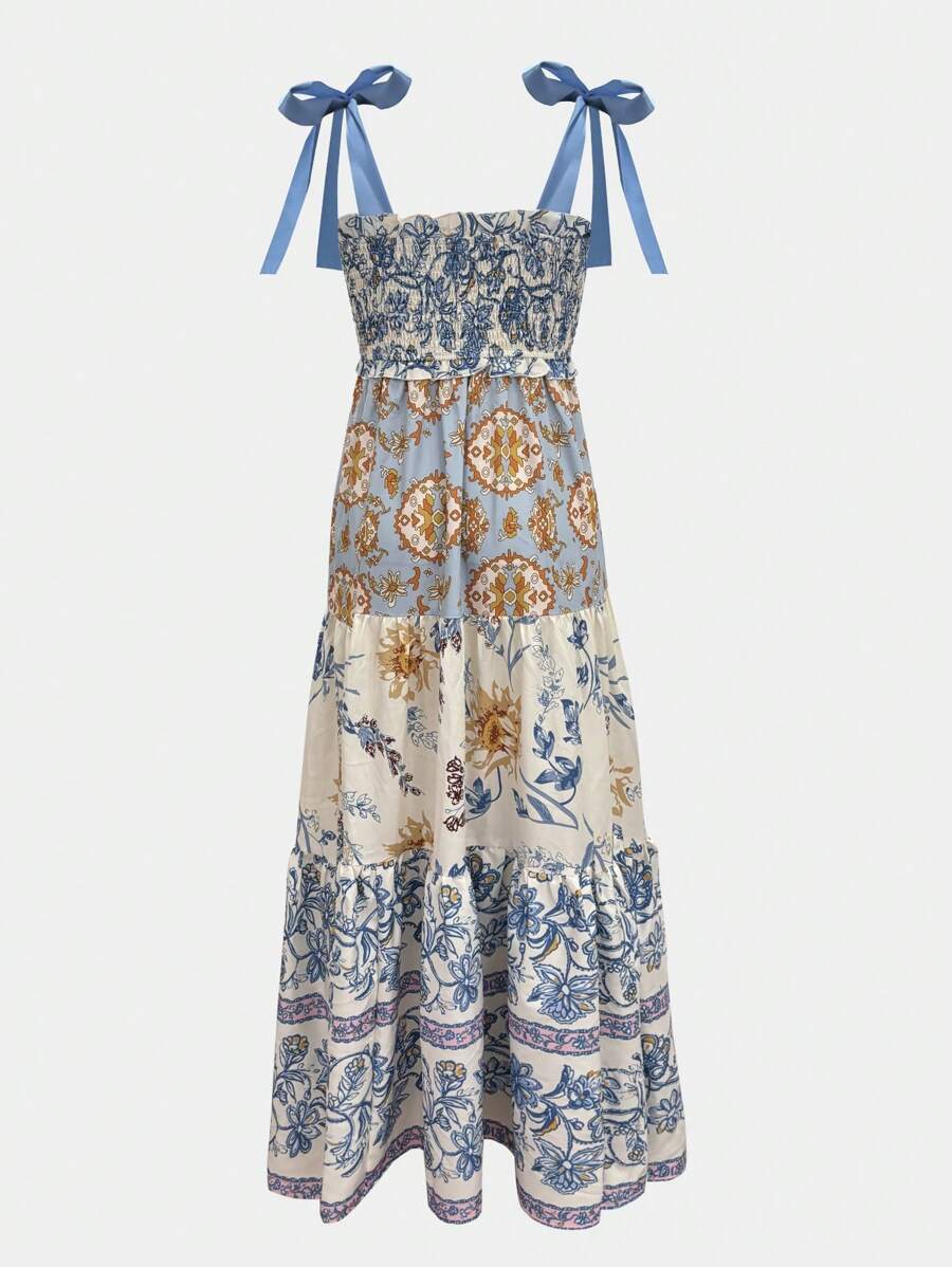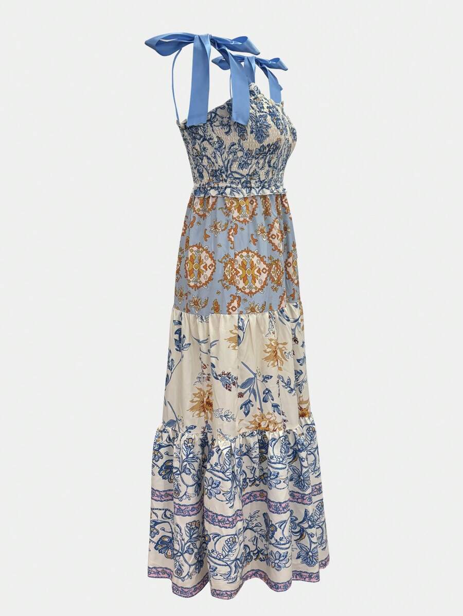 Women’s Floral Lace-Up Spaghetti Strap Pleated Dress