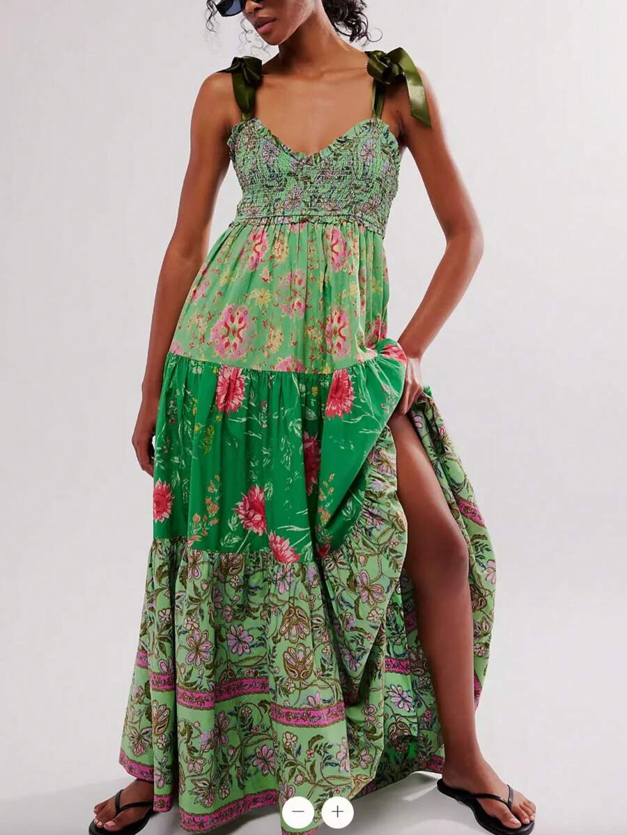 SHEIN Holidaya Surplice Neck Shirred Waist Tiered Maxi Beach Dress
