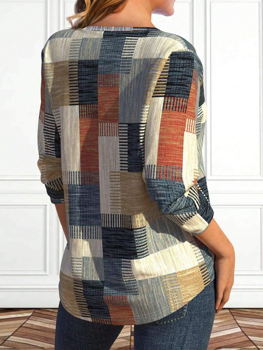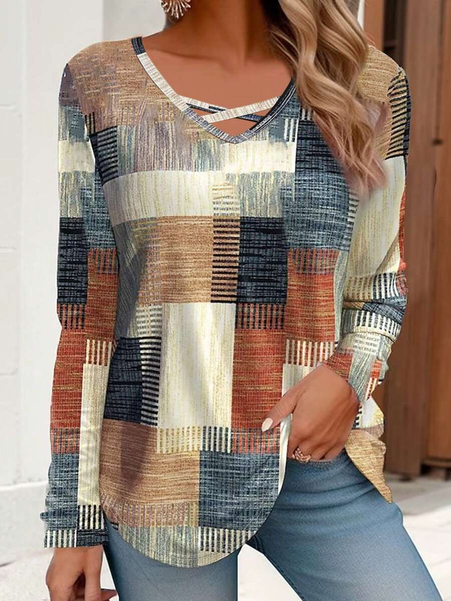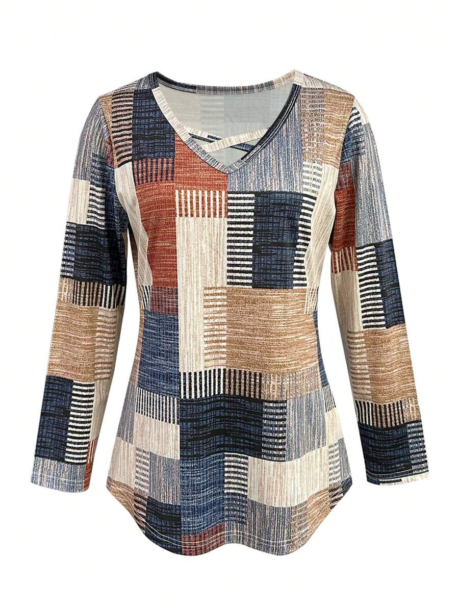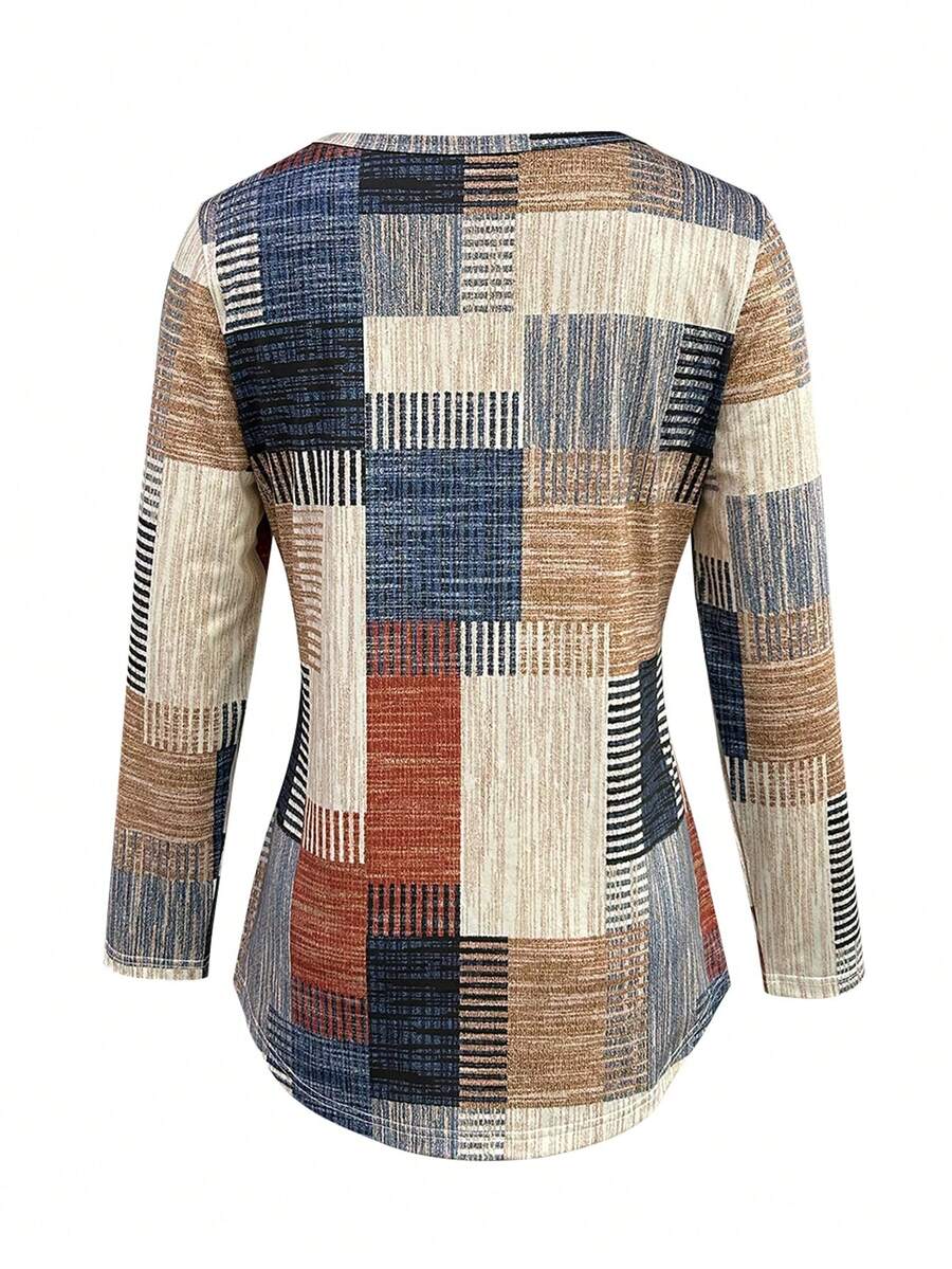 New Autumn/Winter Women’s Patched Print Long-Sleeve Tee
