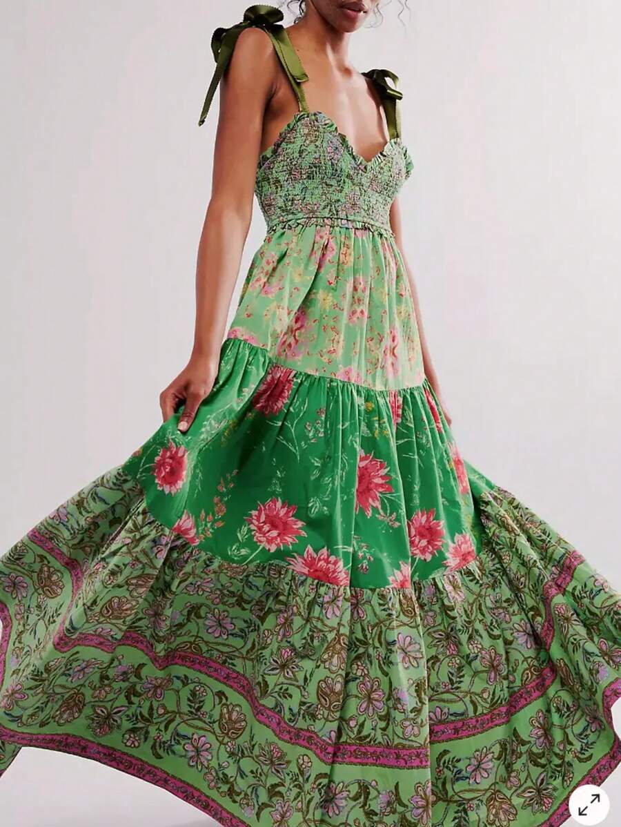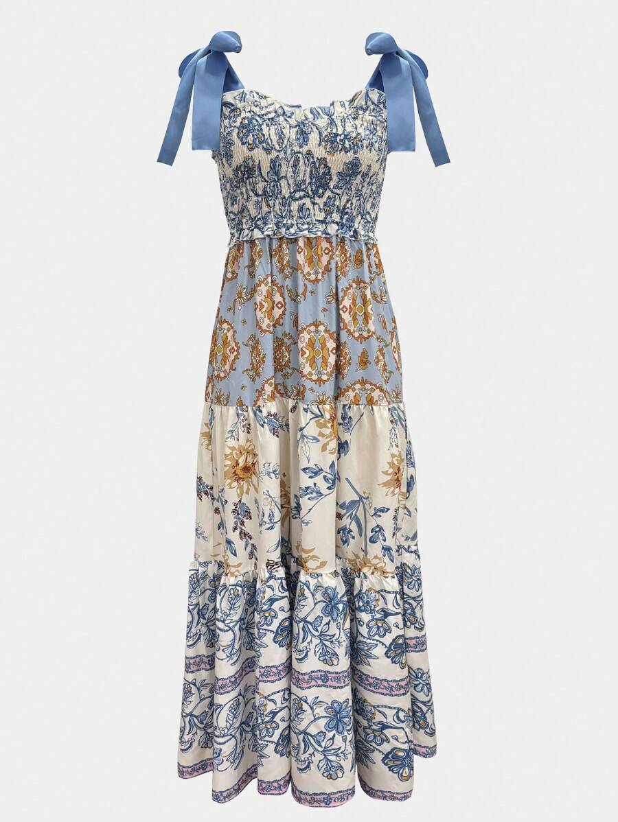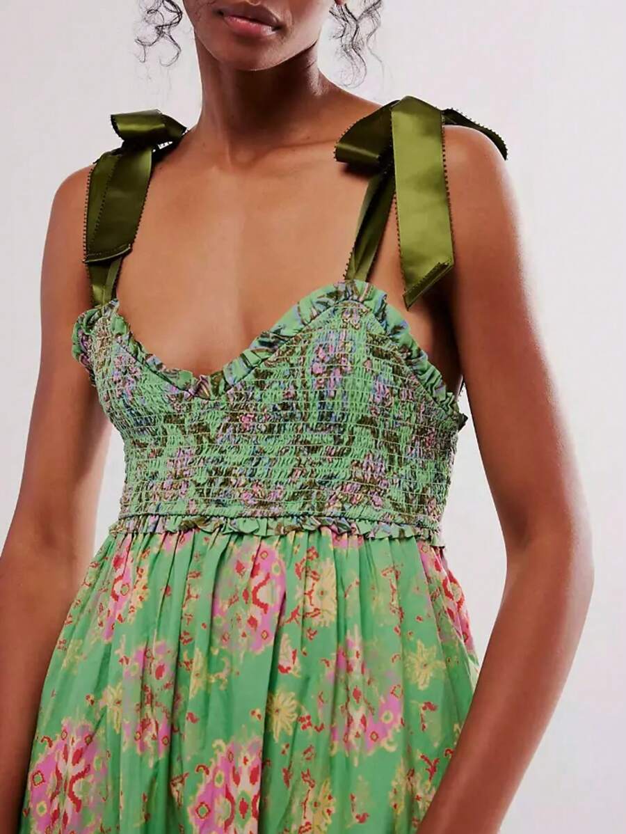 Women’s Floral Lace-Up Spaghetti Strap Pleated Dress